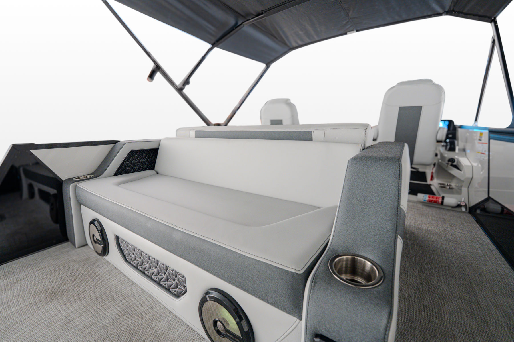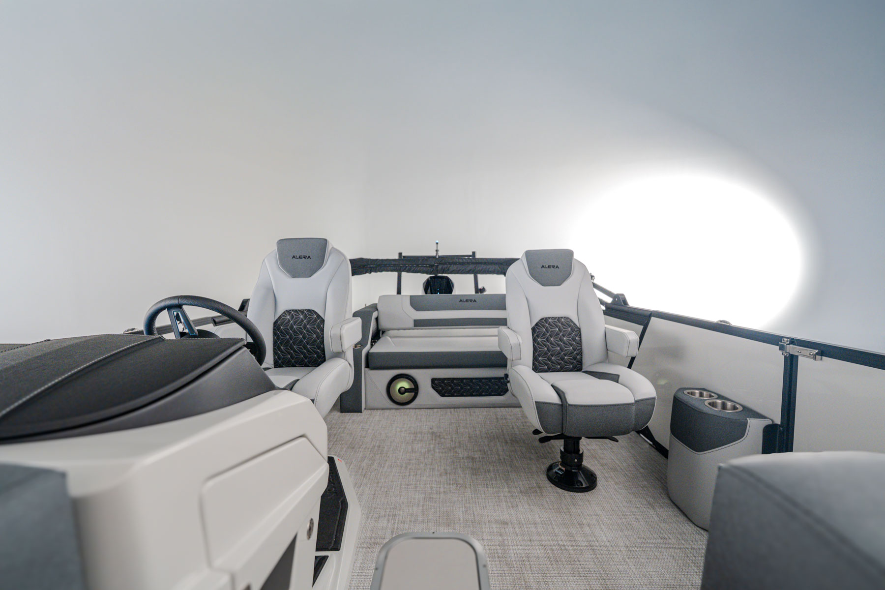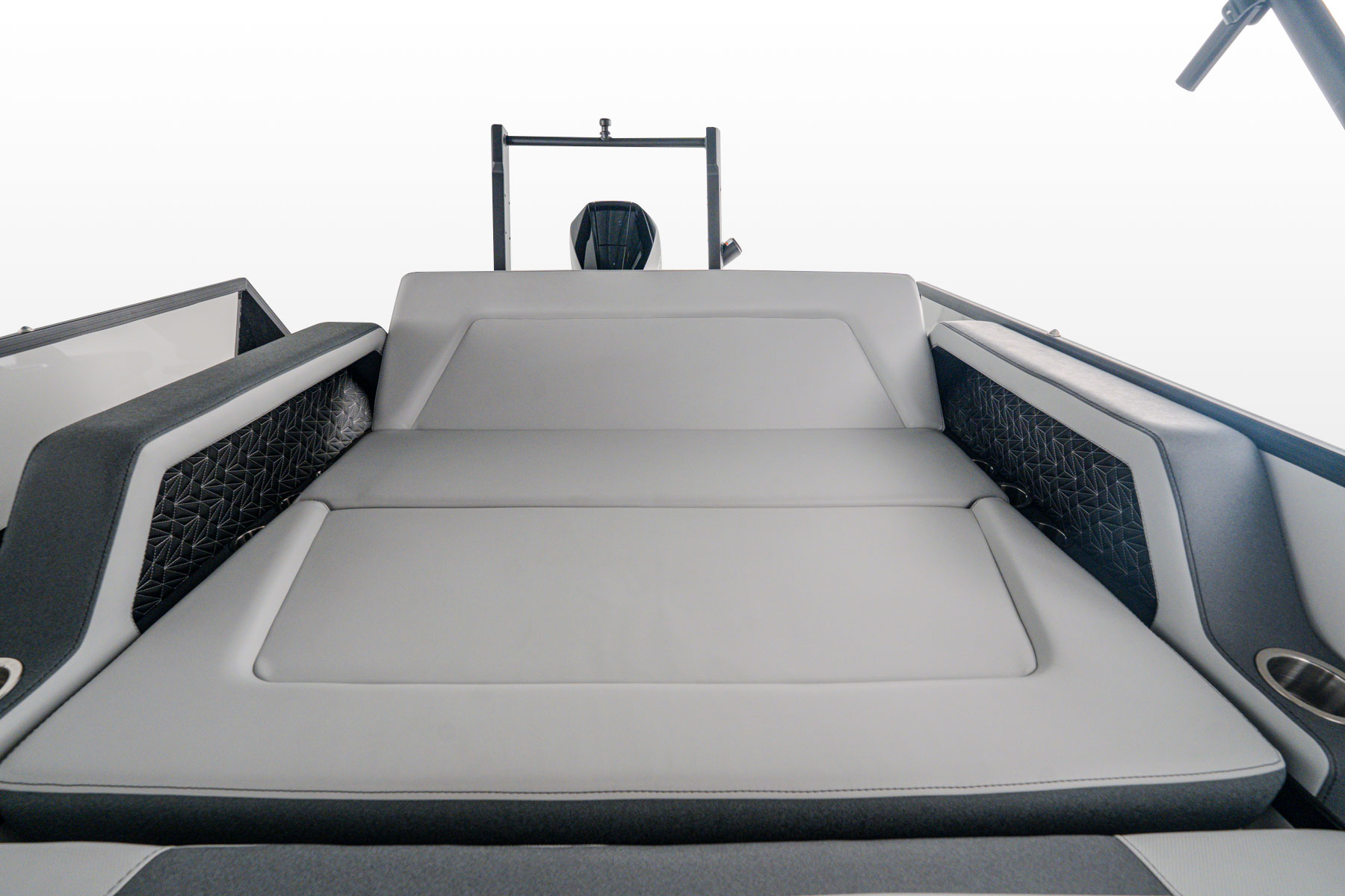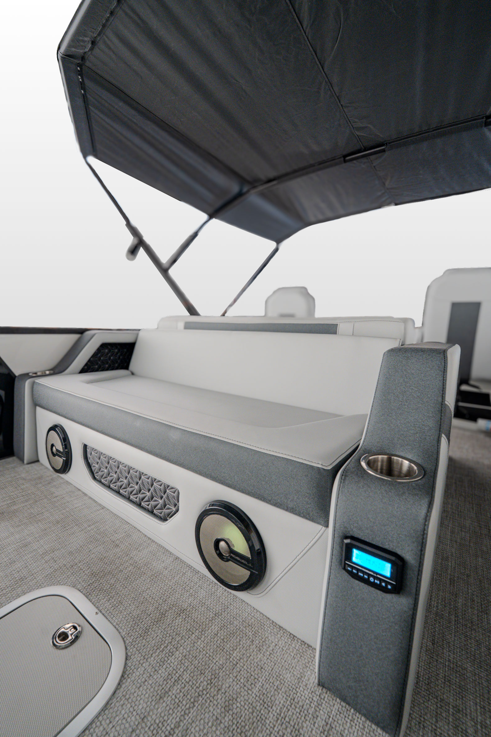 Elegantly crafted with intention, the 23L commands attention with its refined presence on the water. Paired with premium Mercury outboard engines, it delivers smooth, powerful performance. The spacious stern lounge offers multiple seating configurations for a first-class experience, enhanced by the convenience of integrated cupholders and a Roswell Stern Audio Remote.