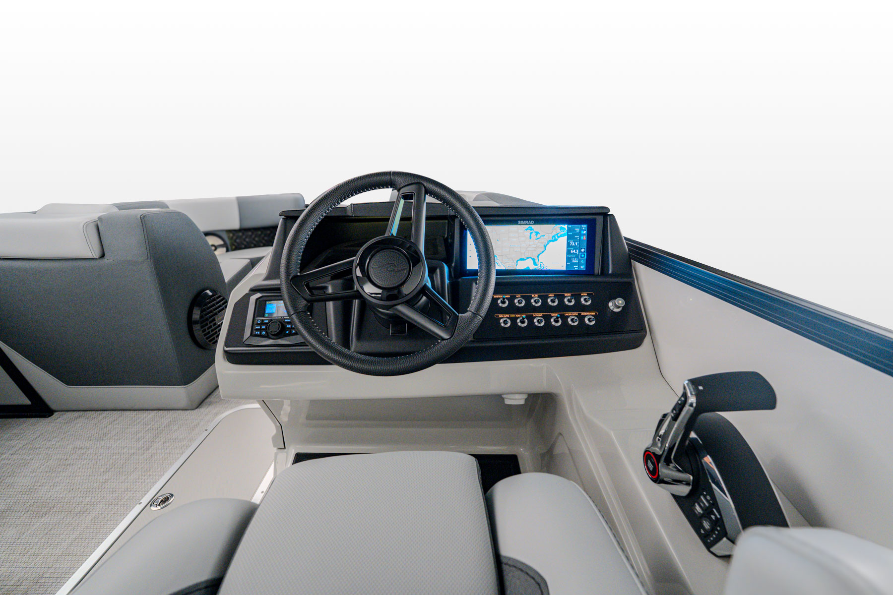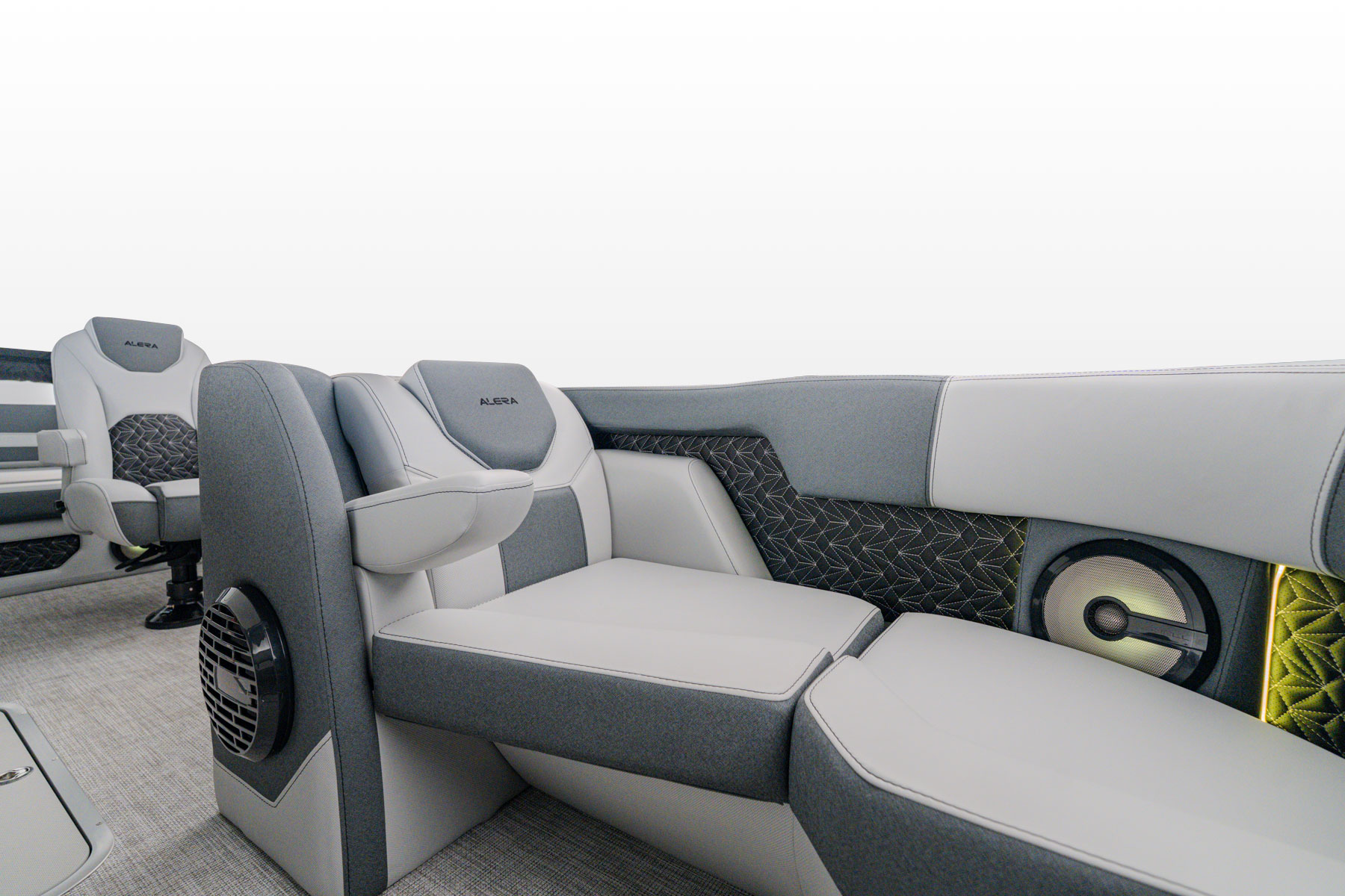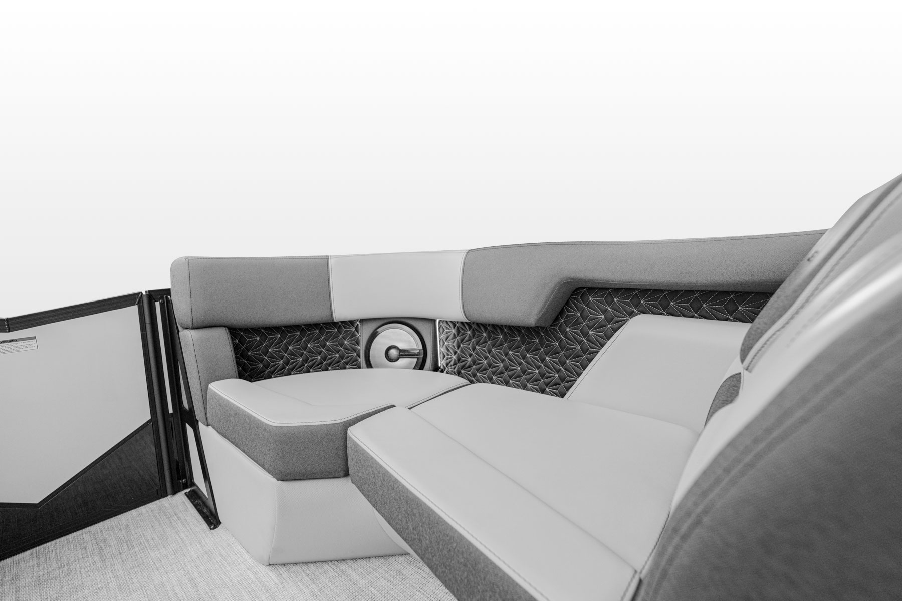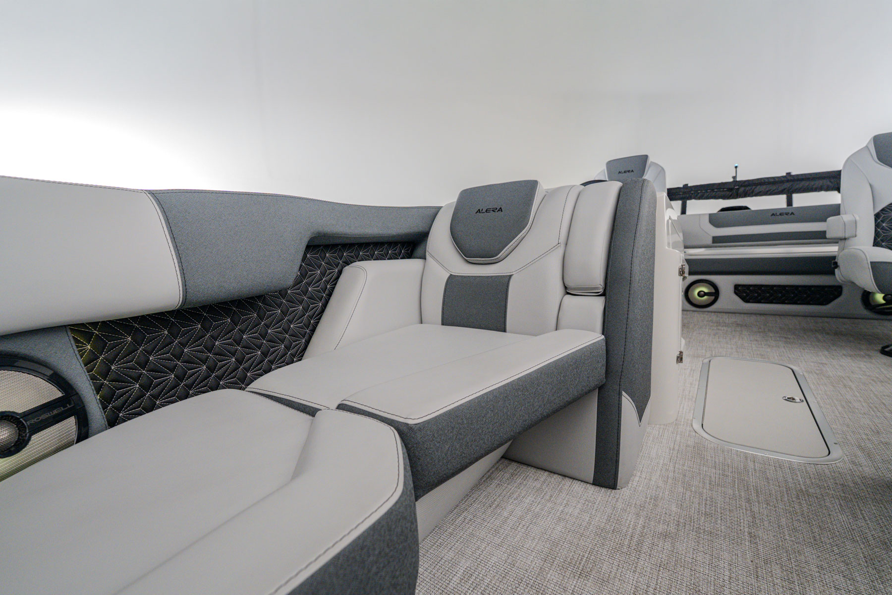 Elegantly crafted with intention, the 23L commands attention with its refined presence on the water. Paired with premium Mercury outboard engines, it delivers smooth, powerful performance. The spacious stern lounge offers multiple seating configurations for a first-class experience, enhanced by the convenience of integrated cupholders and a Roswell Stern Audio Remote.